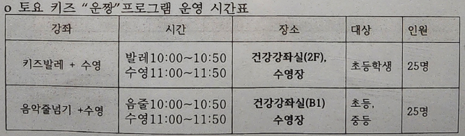 수영 및 건강 강좌 접수기간!!!