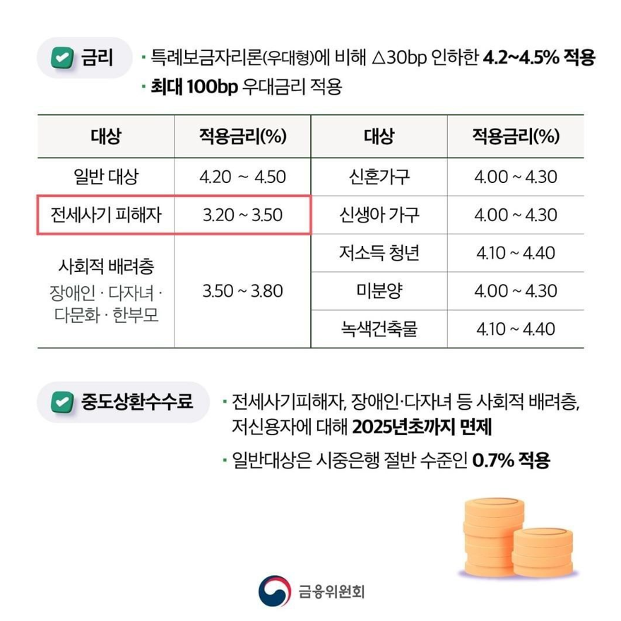 기존 특례보금자리론의 지원자격과 동일하되 전세사기 피해자 항목을 추가하여 혜택을 확대개편하였습니다.