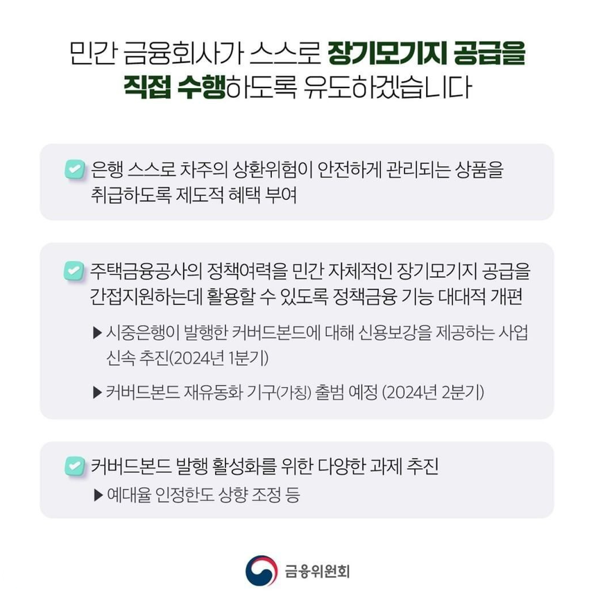 금융기간이 중장기 자금 마련을 위해 안정적인 자산을 담보로 하여 주택자금을 마련을 목적으로하는 대출채권이라 할 수 있습니다. 이를 통해 조속히 보금자리론 자금을 이용할 수 있고 이를 통해 조속히 안정적 자금을 마련하여 서민들에게 지급할 목적으로 활용하는 금융제도입니다.