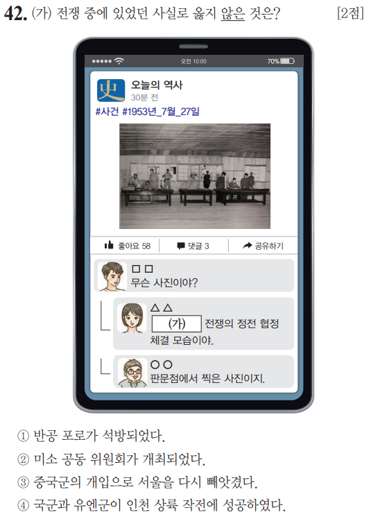 제 58회 한국사능력검정시험(기본) 42번 문제 풀이