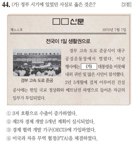 제 58회 한국사능력검정시험(기본) 44번 문제 풀이