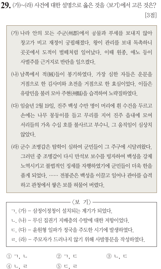 제 59회 한국사능력검정시험(심화) 29번 문제 풀이