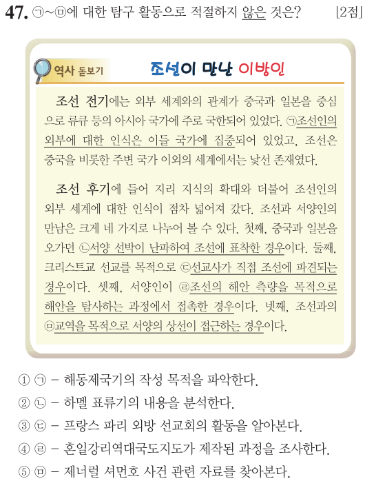 ③ 프랑스로 가서 확인해야 하는 것으로 프랑스 선교사를 박해했던 병인박해(1866년)와 관련있습니다.