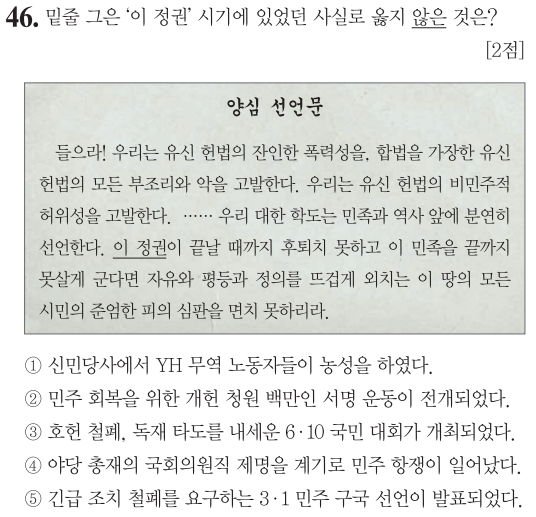 ⑤ 유신헌법에 의거한 긴급조치권을 철폐하는 요구를 위해 3.1 민주 구국 선언이 발표(1976년)되었습니다.