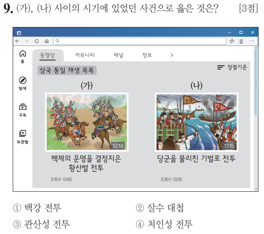 (나) 백제와 고구려가 멸망(668년)하자 한반도 지배야욕을 보이던 당군에 맞서 신라와 민족 연합군이 매소성전투(675년)에 이어 기벌포전투(676년)에서 승리함으로써 당군의 한반도 지배야욕을 물리친 사건입니다.