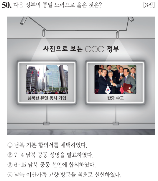 ② 7.4남북 공동 성명 발표는 1972년 박정희 정부때입니다.