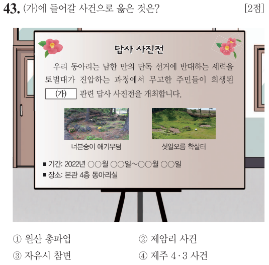 (가) 사건은 제주 4.3사건(1948년)입니다.