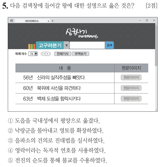 제 60회 한국사능력검정시험(심화) 5번 문제 풀이
