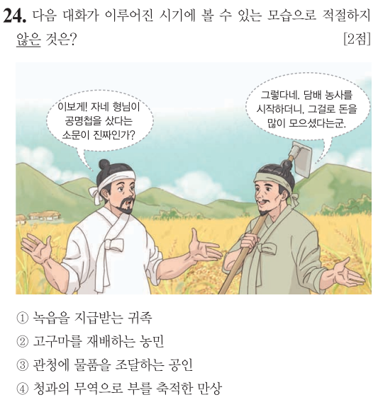 ③ 조선 광해군때 처음으로 대동법이 실시되면서 공인이 특산물을 담당 판매하는 상인으로 등장했습니다. 공인은 조선후기 상업 발전에 기여했습니다.
