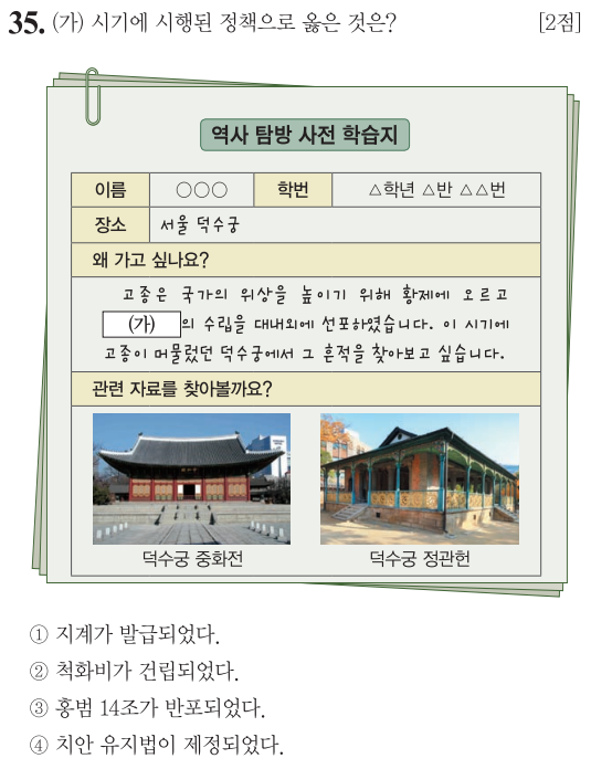제 61회 한국사능력검정시험(기본) 35번 문제 풀이