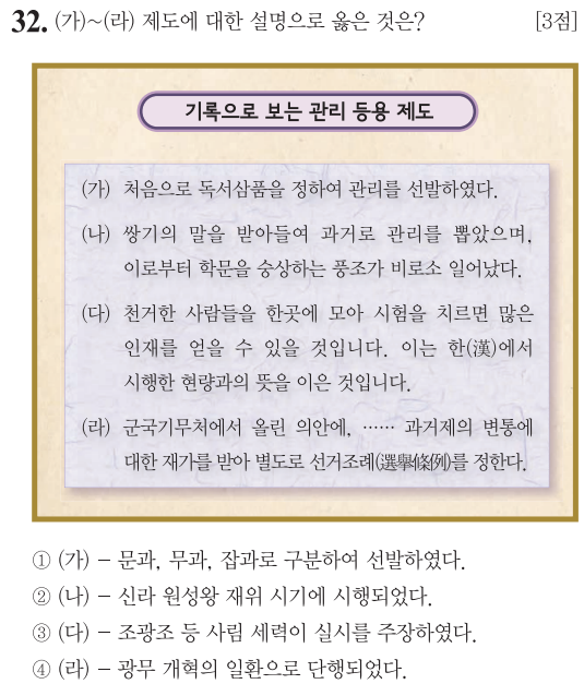 ② (나) - 후주출신 쌍기의 건의로 고려 광종은 과거제를 실시했습니다.