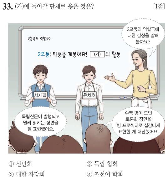 ② 독립협회(1896~1898년)는 서재필을 중심으로 운영된 조직으로 독립신문, 독립문, 만민공동회, 관민공동회를 통회 헌의6조 발표, 중추원설립 등의 활동을 하였지만 황국협회의 방해로 해산되고 말았습니다.