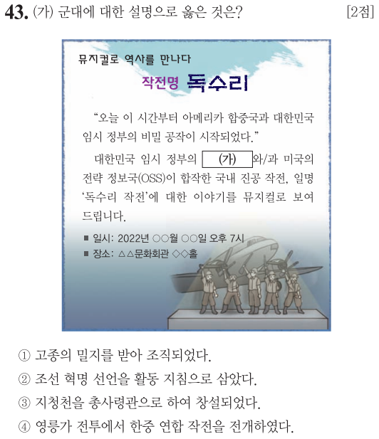 미국의 전략 정보국과 합작으로 1945년 8월 20일 국내 진공 작전을 계획했으나 원자폭탄이 떨어지면서 일본은 서둘러 8월 15일에 항복을 하게 되었습니다. 이로써 한국광복군의 노력은 허사로 돌아갔습니다.