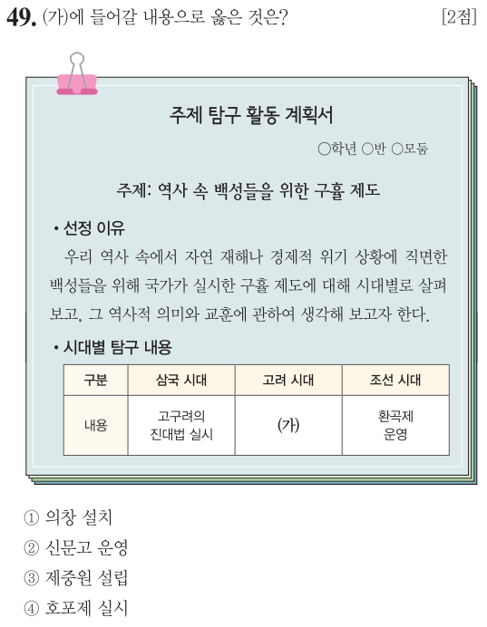 제 61회 한국사능력검정시험(기본) 49번 문제 풀이
