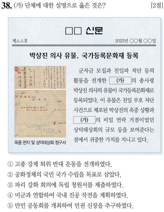 제 61회 한국사능력검정시험(심화) 38번 문제 풀이