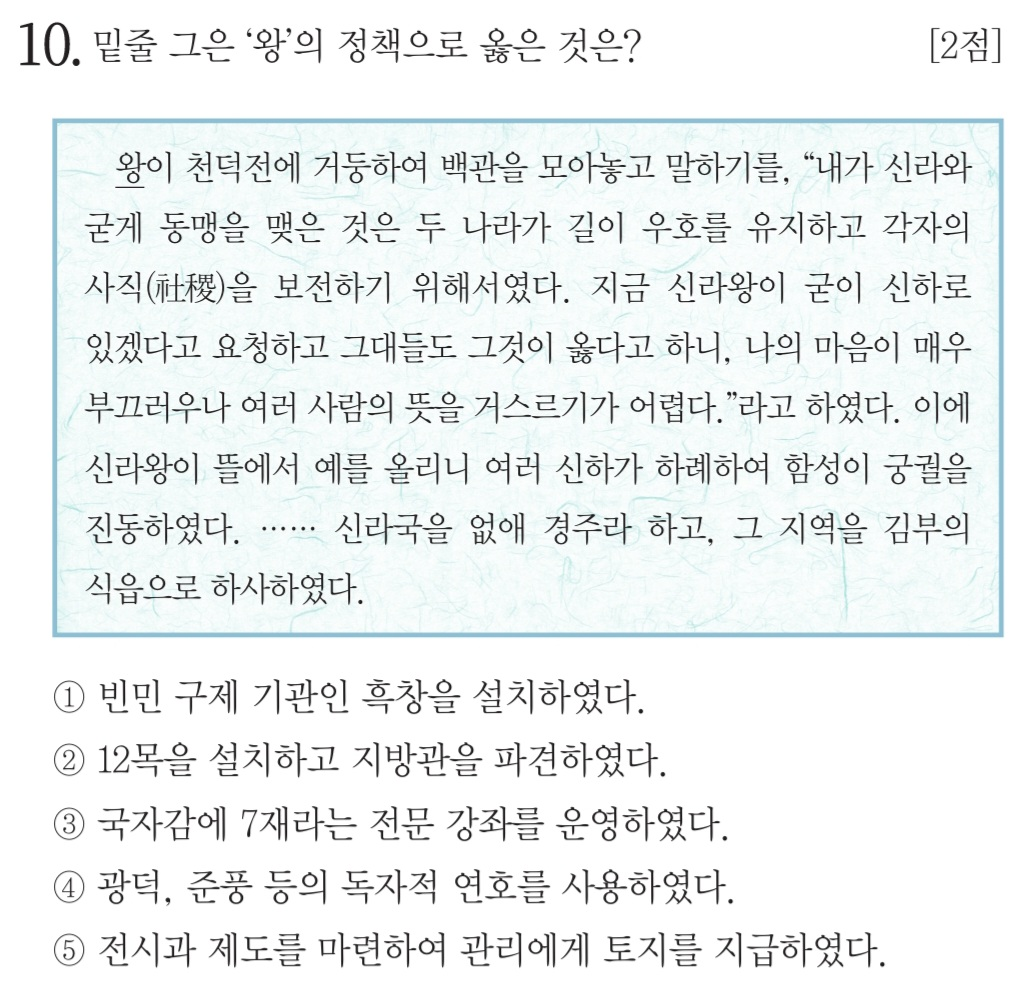 제 62회 한국사능력검정시험(심화) 10번 문제 풀이