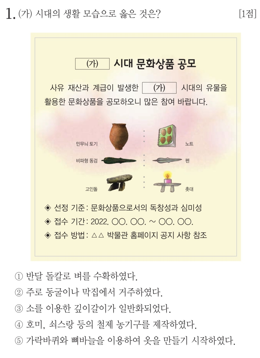 사유재산이 발생한 시대... 바로 알 수 있습니다. (가)시대는 역사시대의 시작점인 청동기시대입니다.