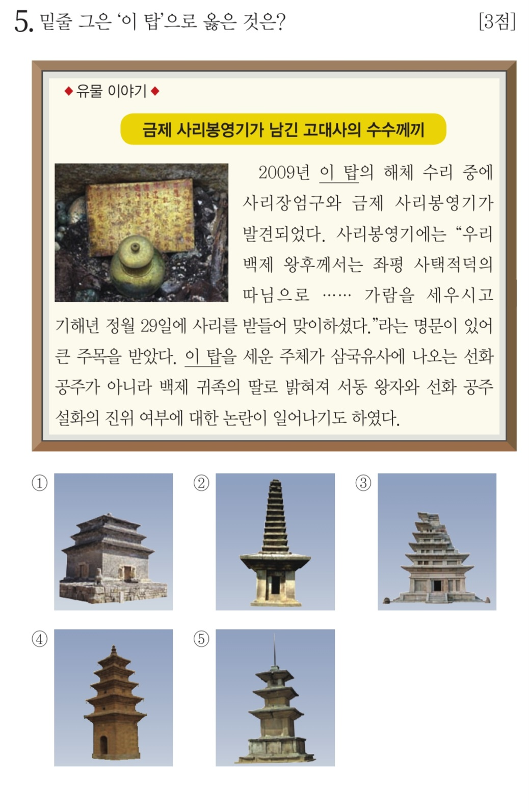 문제에 나온 비석은 훼손 정도가 심해 이를 보강수리하고자 분해하여 재 조립하는 과정을 거쳤습니다. 그리고 우리가 삼국유사를 통해 알고 있었던 서동요의 중인공, 무왕과 신라 선화공주의 스토리와는 다소 다른 내용이 숨어 있었습니다. 무왕의 왕비가 사택씨의 딸이었다는 것입니다.