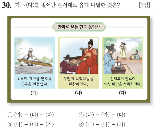 (나) 악학궤범은 조선 성종때 만들어진 음악서적입니다.