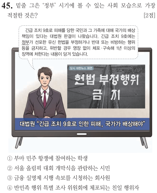 긴급조치 9호, 유신헌법, 44번 문제에서도 언급했듯이 이""정부""는 박정희 정부입니다.
