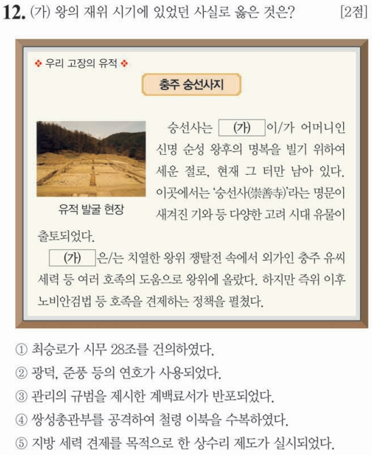 제 63회 한국사능력검정시험(심화) 12번 문제 풀이