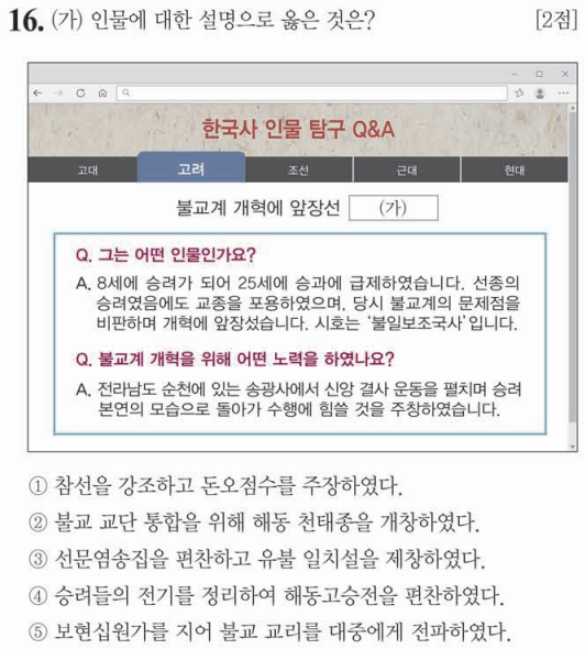 ③ 유불 일치론을 주장한 인무른 혜심입니다.