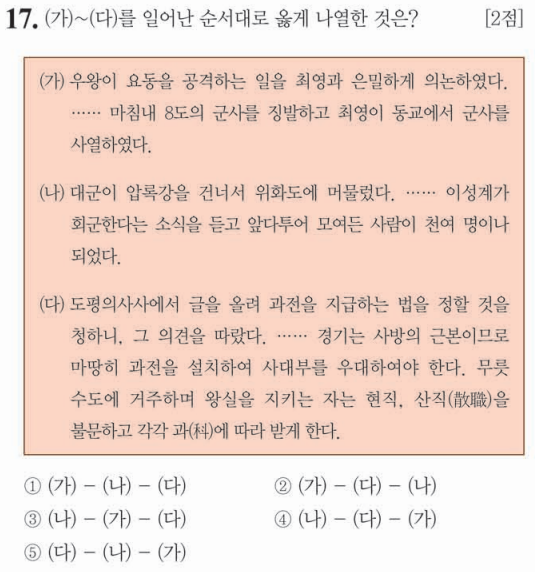 제 63회 한국사능력검정시험(심화) 17번 문제 풀이