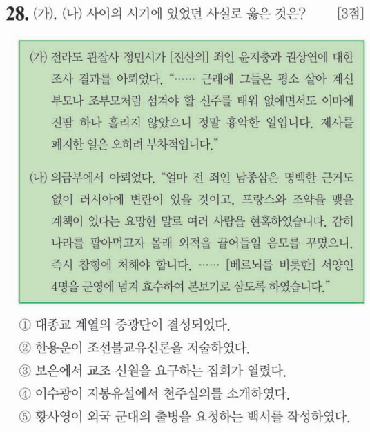 제 63회 한국사능력검정시험(심화) 28번 문제 풀이