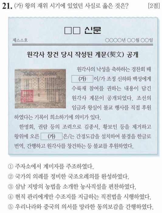 제 63회 한국사능력검정시험(심화) 21번 문제 풀이