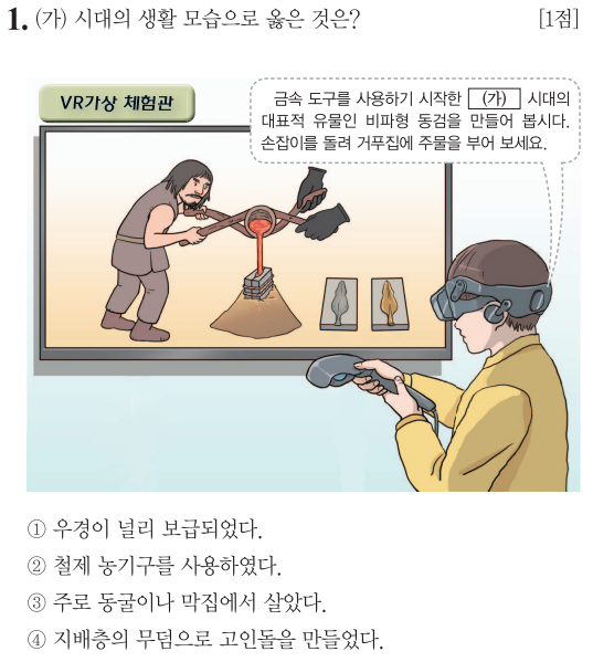 비파형동검이 있었던 (가)시대는 청동기 시대입니다. 청동기 시대의 생활모습을 고르면 되는 문제입니다.