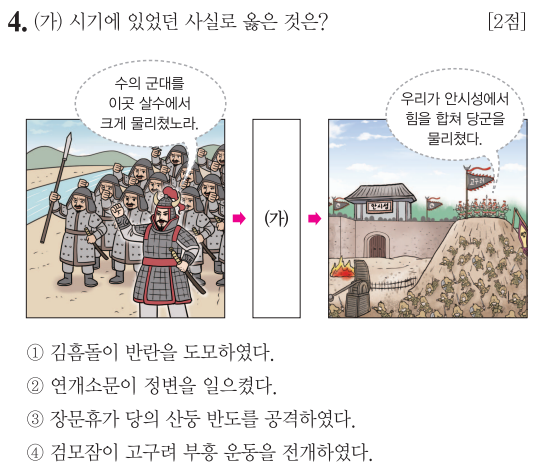 ② 연개소문의 정변은 642년에 있었고 영류왕을 죽이고 고구려 마지막 왕인 보장왕을 강제로 즉위시킨 사건입니다.