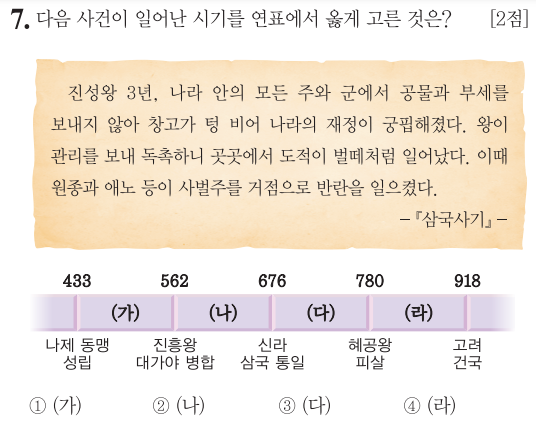 제 64회 한국사능력검정시험(기본) 7번 문제 풀이