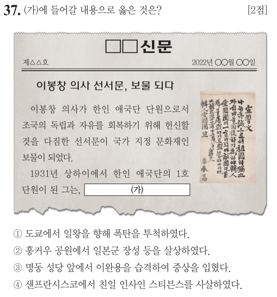 제 64회 한국사능력검정시험(기본) 37번 문제 풀이