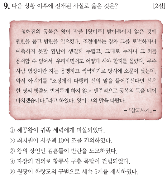 제 64회 한국사능력검정시험(심화) 9번 문제 풀이