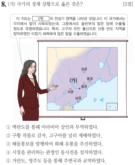 ⑤ 각 나라나 부족과 연결하는 육로나 해로를 통해 발해는 교역을 하였습니다.