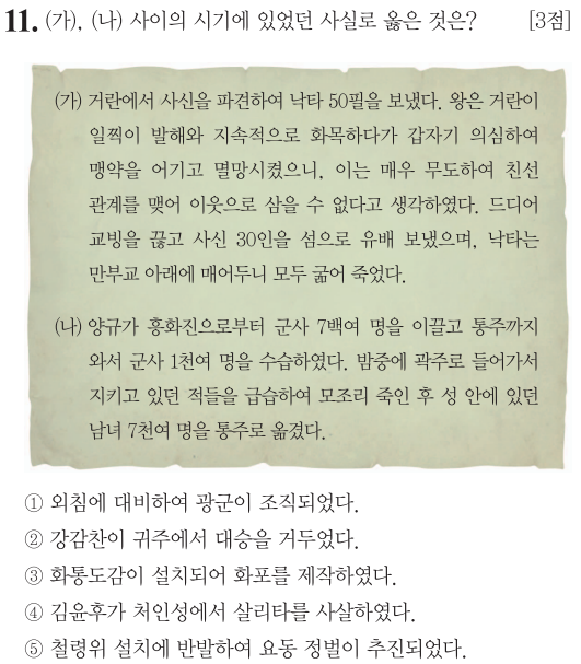 제 64회 한국사능력검정시험(심화) 11번 문제 풀이