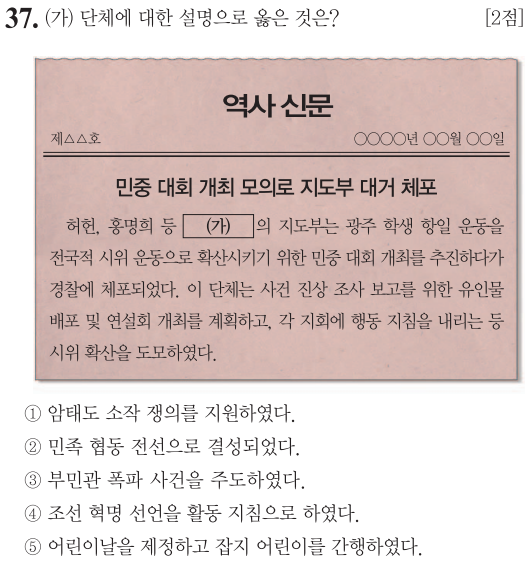 제 64회 한국사능력검정시험(심화) 37번 문제 풀이
