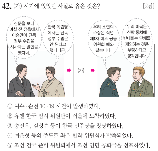 (가)이후 제1차 미소공동위원회는 1946년입니다. 그리고 이 상황은 1947년 제2차 미소공동위원회로 신탁통치 반대에 대해 주장하고 있는 모습입니다.