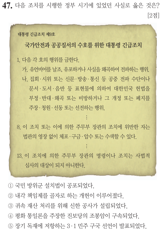 제 64회 한국사능력검정시험(심화) 47번 문제 풀이