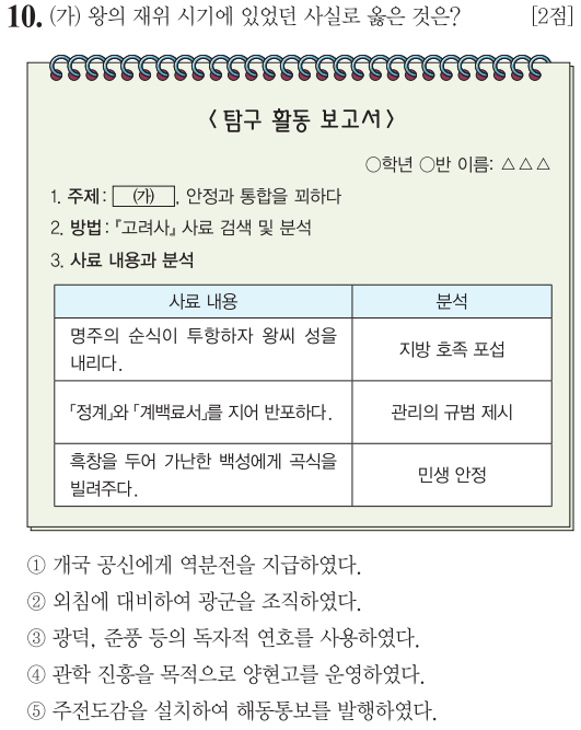 왕씨 성을 하사하다... 이는 사성정책입니다. 하사할 사 / 성씨 성.... 성씨를 하사하여 왕씨가 되었다.... 계백료서는 신하들이 왕에게 어떻게 해야하는지 일종의 예법.. 예절서라 할 수 있습니다. 흑창이라는 구휼 기관... 종합해보면 이는 고려 건국초 국가 운영을 위해 힘썼던 태조 왕건 재위시기입니다.