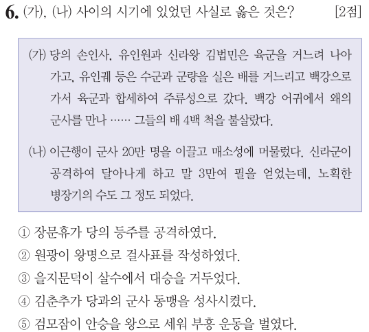 (가) 신라왕 김법민... 이는 삼국을 통일한 문무왕입니다. 백강전투에서 백제의 부흥을 진압한 백강(금강)전투는 663년입니다.