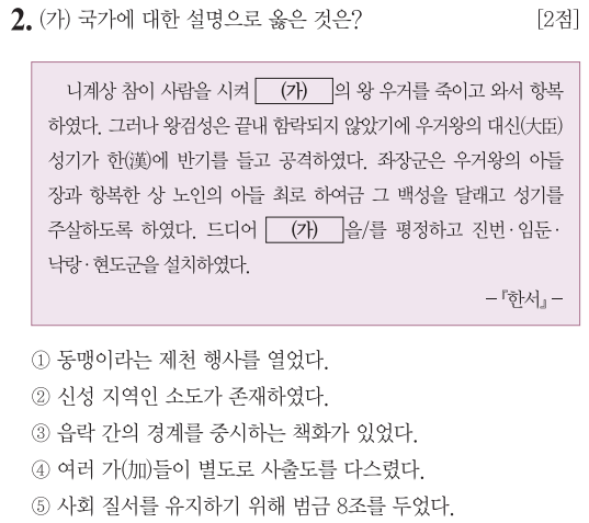 우거왕... 왕검성(고조선의 수도)... 한나라는 (가)를 멸망시킨 이후 진번, 임둔, 낙랑, 현도군을 설치했다... (가)는 고조선입니다.