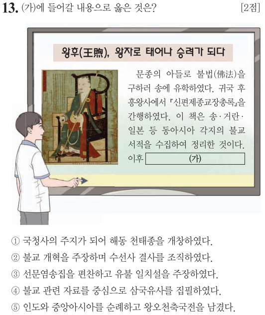⑤ 왕오천축국전은 혜심이 인도를 다녀온 기행문이라 생각하면 쉽습니다.