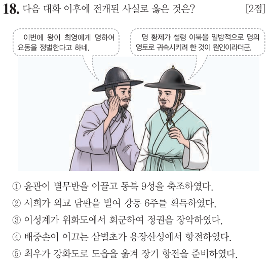 이때 요동 정벌을 주도했던 인물이 최영장군이며, 당시 고려의 왕이 우왕이었습니다. 그러나 이성계는 요동정벌론에 반기를 들었고... 이 과정에서 1388년 위화도 회군이라는 이슈가 생겨난 것입니다.