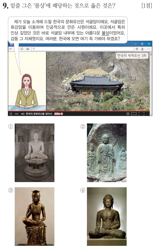 석굴암.. 통일신라시대에 김대문이 전생의 부모님을 위해 만든 사찰로 밑줄 친 불상은 석굴암 본존불상입니다.