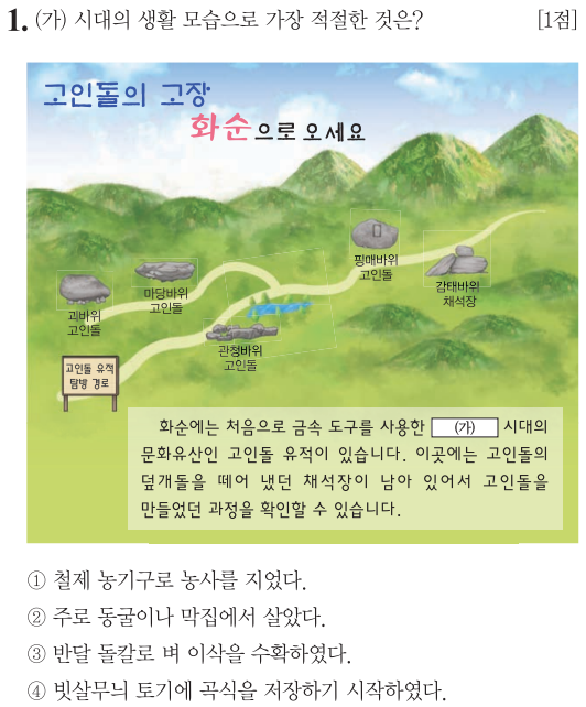 고인돌은 대표적은 청동기시대 유적입니다. (가)시대는 청동기시대입니다.