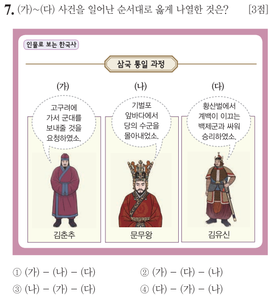 (가) 김춘추는 당시 백제의 공격으로부터 도움을 요청하고자 고구려에 사신의 신분으로 갔습니다. -> 진흥왕이 백제 성왕을 공격함으로써 관산성 전투이후 신라와 백제는 원수 관계였고.. 백제가 신라를 자주 공격하였습니다.