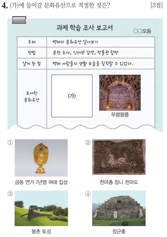 ③ 몽촌토성은 백제의 첫 수도였던 위례성에 있었던 백제의 유적입니다.