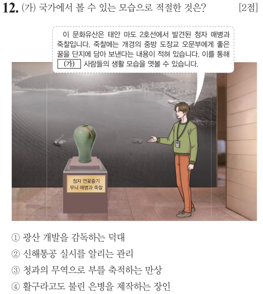 청자.. 기본적으로 고려시대 대표적인 도자기입니다. (가)는 고려입니다.