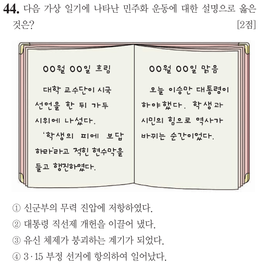 대학 교수단의 시국선언... 이승만 대통령의 하야... 이는 1960년에 있었던 4.19혁명입니다.